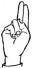 На ћирилици написано КОСТАДИН БЛАЖЕВАЦ састоји се из 16 слова [?]. Исписано ћириличном једноручном азбуком за глувонеме: